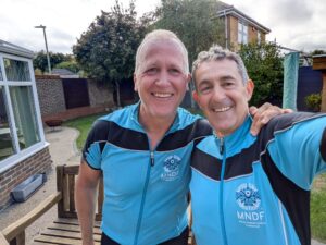 Here are Trevor Young and Steve Williams wearing our cycling shirts in Bishops Stortford 💙🏴